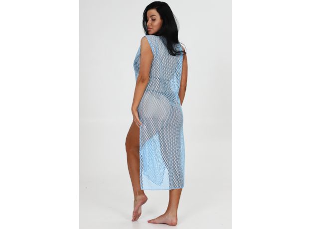 Пляжная легкая женская туника, выполненная из сетки - это универсальный предмет гардероба, который свободно облегает фигуру. Горловина с округлым вырезом. Туника удлиненная, по бокам разрезы, которые дополняют пляжный образ.
