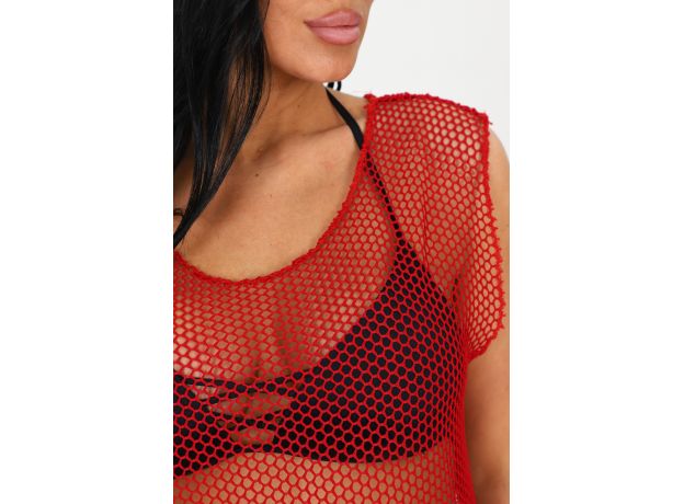 Пляжная легкая женская туника, выполненная из сетки - это универсальный предмет гардероба, который свободно облегает фигуру. Горловина с округлым вырезом. Туника удлиненная, по бокам разрезы, которые дополняют пляжный образ.