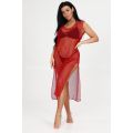 Пляжная легкая женская туника, выполненная из сетки - это универсальный предмет гардероба, который свободно облегает фигуру. Горловина с округлым вырезом. Туника удлиненная, по бокам разрезы, которые дополняют пляжный образ.