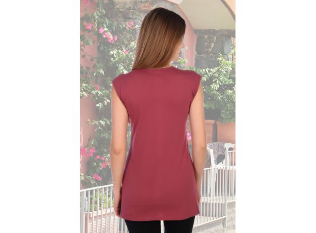 Туника из кулирки свободного покроя. На полочке печать в виде имитации вышивки. Горловина изделия окантована. В боковых швах разрезы.