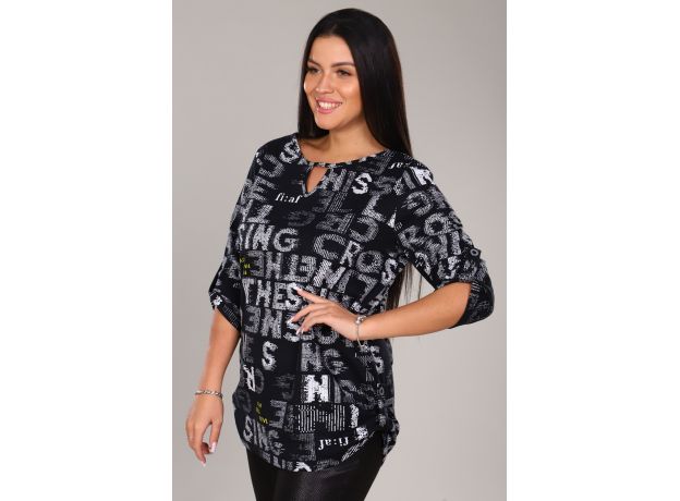 Туника в стиле oversize имеет неповторимый свободный крой. Этот стиль подходит для любой женщины, ведь он может скрыть недостатки фигуры и подчеркнуть ее достоинства. По горловине расположен треугольный вырез, рукав 3/4. По низу изделия, по бокам и на рукавах имеются паты, закрепленные серебристыми пуговицами, что делает тунику еще привлекательнее. Невозможно описать удобство и прелесть вещей в этом стиле, чтобы это понять, их просто нужно носить!