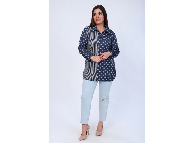 Туника теплая, комбинированная, отложной ворот, рукав длинный, низ изделия округлый.