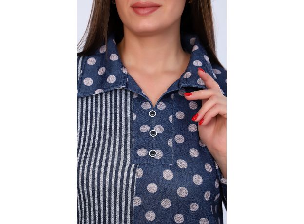 Туника теплая, комбинированная, отложной ворот, рукав длинный, низ изделия округлый.