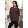 Туника молодежная из мягкого, приятного к телу, трикотажа ОТТО. Круглая горловина обработана обтачкой, спущенная пройма, длинный рукав. Спинка удлинена, в боковых швах удобные карманы.