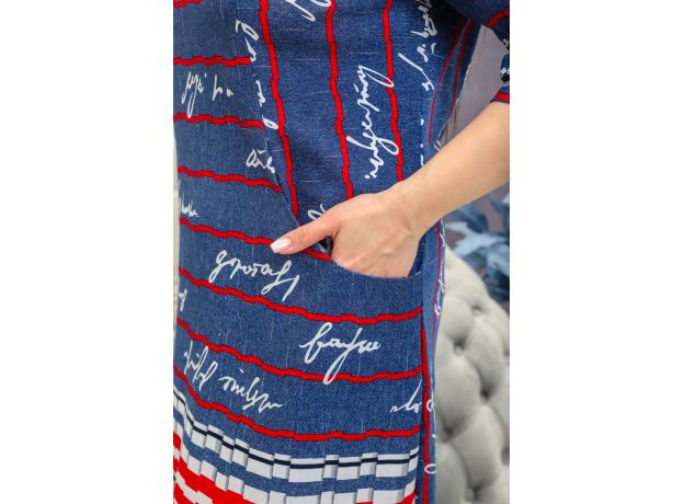 Туника полуприлегающего силуэта, средней длины, с округлой горловиной, с карманами в рельефных швах полочки. Рукав реглан, длиной 3/4. С разрезами в нижней части боковых швов. Горловина обработан бейкой из основного полотна.