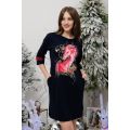 Туника прямого силуэта, длиной выше колена, с округлой горловиной, с карманами в боковых швах. Рукав длиной 3/4. С разрезами в нижней части боковых швов. Горловина обработана обтачкой из основного полотна.